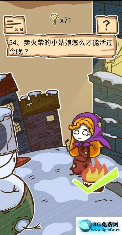 第54关将小姑娘手上的火柴拖动到篮子里就过关了。