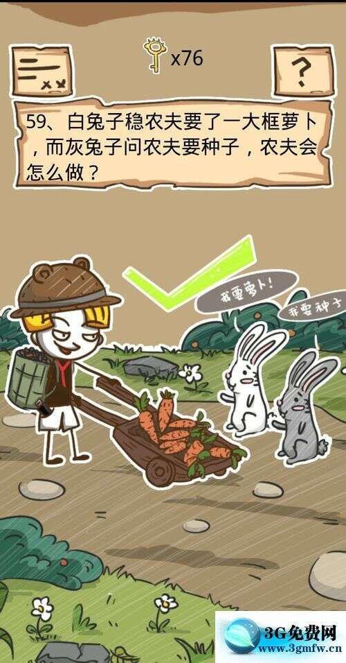 第56关将兔子身旁的面具拖动到兔子脸上就过关了。