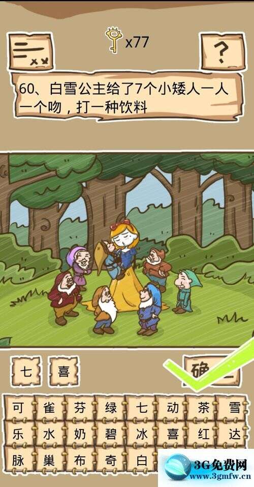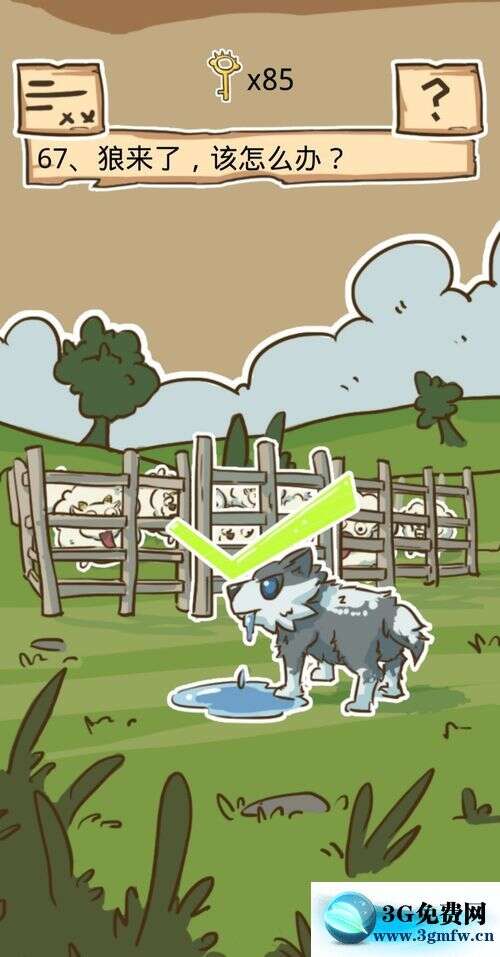 第70关将羊毛拖动到狼这个字的位置,然后点击狼这个字就过关了。