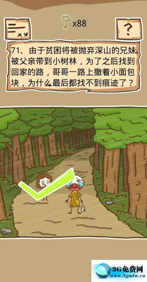 第71关将地上的面包拖动到妹妹脸上就过关了。