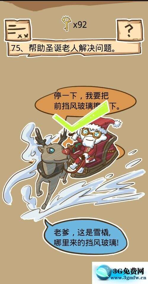 第75关用手指将圣诞老人的眼镜擦干净就过关了。