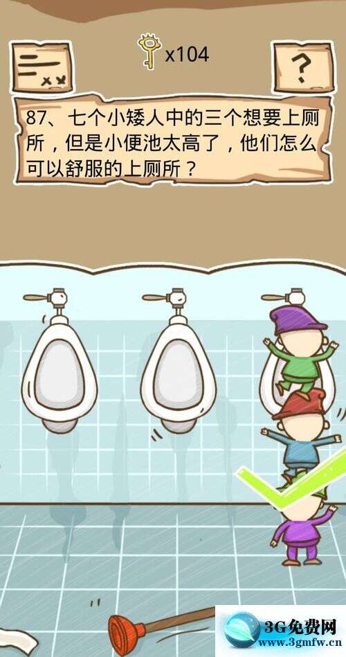 第87关将左边和中间的小矮人拖动到右边的小矮人身上就过关了。