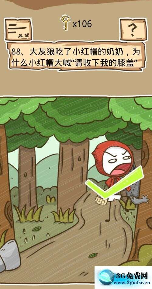 第88关将小红帽拖动到大灰狼身上就过关了。