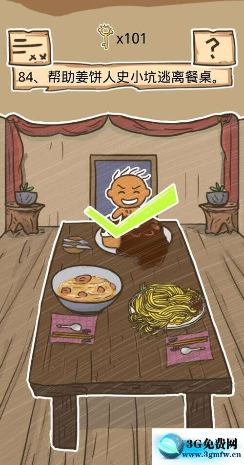 史小坑的烦恼5第84关【帮助姜饼人史小坑逃离餐桌】答案攻略