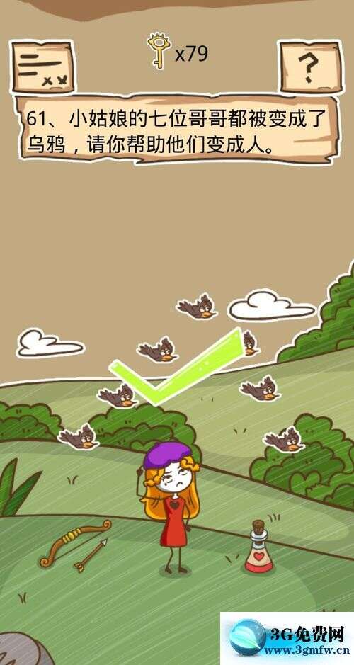 史小坑的烦恼5第61关【小姑娘的七位哥哥都被变成了乌鸦请你帮助他们变成人】答案攻略