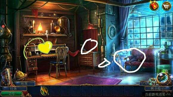 把电池弄进去打开开关,和爸爸对话完得到密码,在箱子上输入密码得到灯泡💡,把灯泡换上去出来实验室看到爆炸然后和警察对话进去实验室→点击放钥匙🔑的位置→瓶子.管子拿去→拿上纸后面的红色导电片→在箱子里找到管子→点击博士的位置找寻物品→得到管子