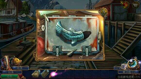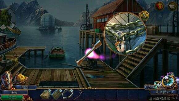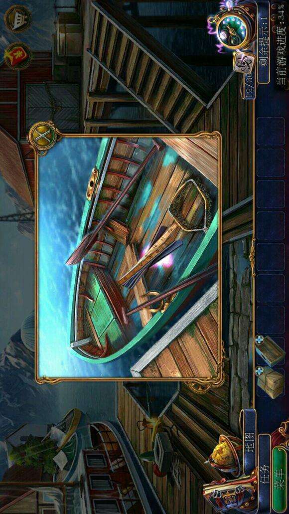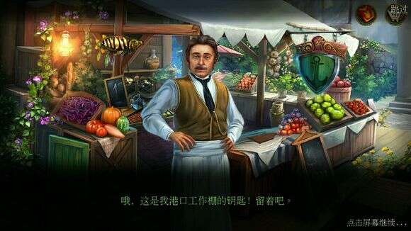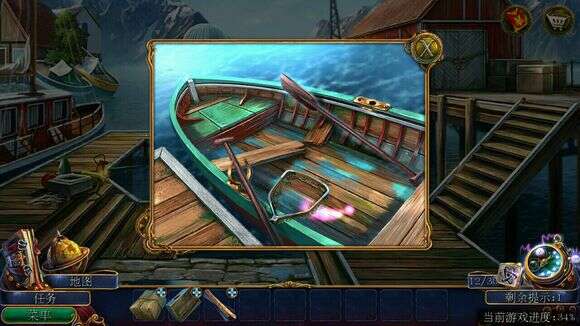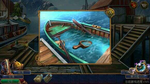 进到港口跟男子对话,然后在旁边的铁盒子上得到勺子,把船里的水给舀出来得到一个延长尺和没有网的网兜,去旁边房子的锁🔒上得木棍插进木桩里得到锤子🔨,去店主的水果处有个瓶子用锤子🔨打破得到港口的钥匙🔑打开房子完成游戏