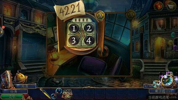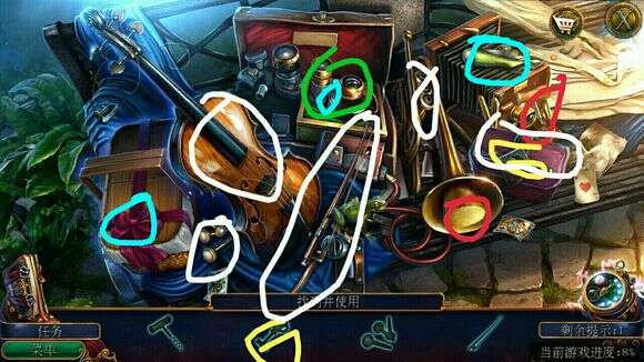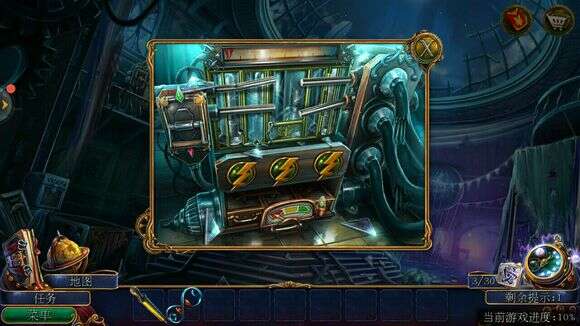 从车上拿到旋钮和螺丝刀并拉下把手,返回在车的旁边找寻物品得到泵,回到实验室用螺丝刀从瓶子上拿到无限符号,把旋钮安到上面拉下把手得到电池,回到保安室里输入密码得到钥匙,钥匙安到自行车旁边的位置得到拼图,在实验室的箱子上拼好图拿到电线