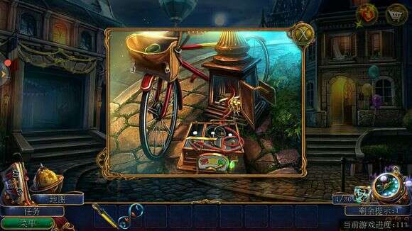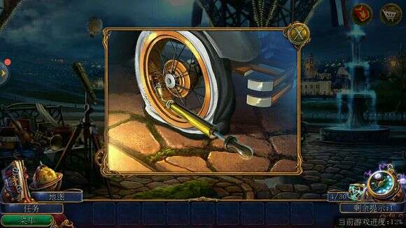 把电线和电池在自行车旁边充上电拿上电池,进公寓把符号安到黑板那得到充气嘴和电池条,回到汽车那里安上电池和电池条并按照顺序完成游戏
