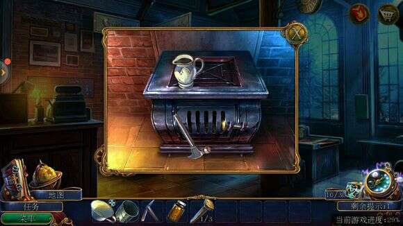在进行游戏得到开锁🔒器,用开锁🔒器把旁边的箱子打开得到刮刀.煤油.防火泥,用刮刀弄点树脂,先跟警察拿到火柴然后去火炉那把煤油倒进去用火柴点上得到热咖啡☕,把咖啡☕倒进杯子里给女子得到贝壳装饰,把装饰安到后面小房子的箱子上得到一把缺少刀刃的钢锯.水泵.旗帜.螺丝,回到前面把水泵弄上去接上水