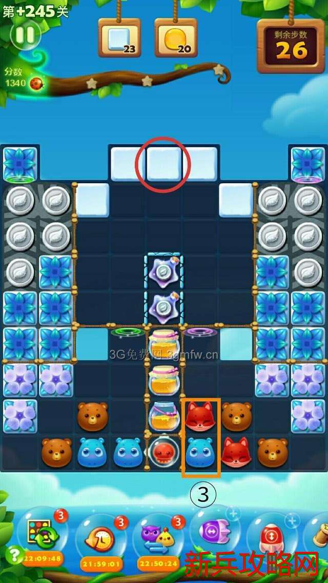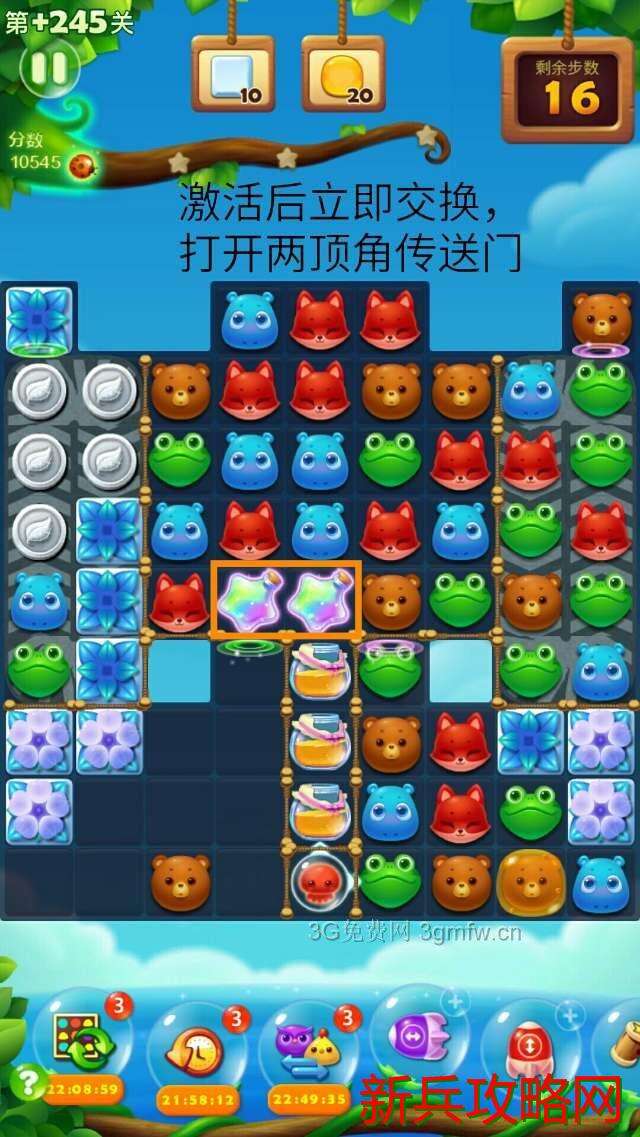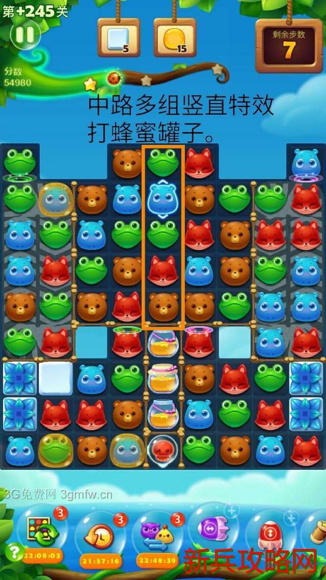 建议:两顶角传送门打通后,多组魔力鸟+特效,轰炸蜂蜜罐子(1:1)