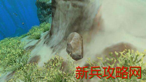 接着在周围仔细搜索一下,应该很容易发现下图所示的石灰岩,点击左键敲碎后可以得到钛和铜,敲出两钛一铜即可,多敲出来的也可以拿着很快就能用到。