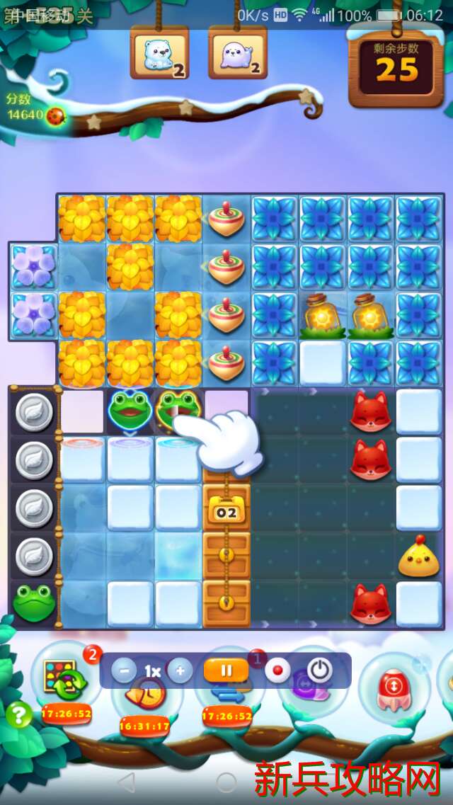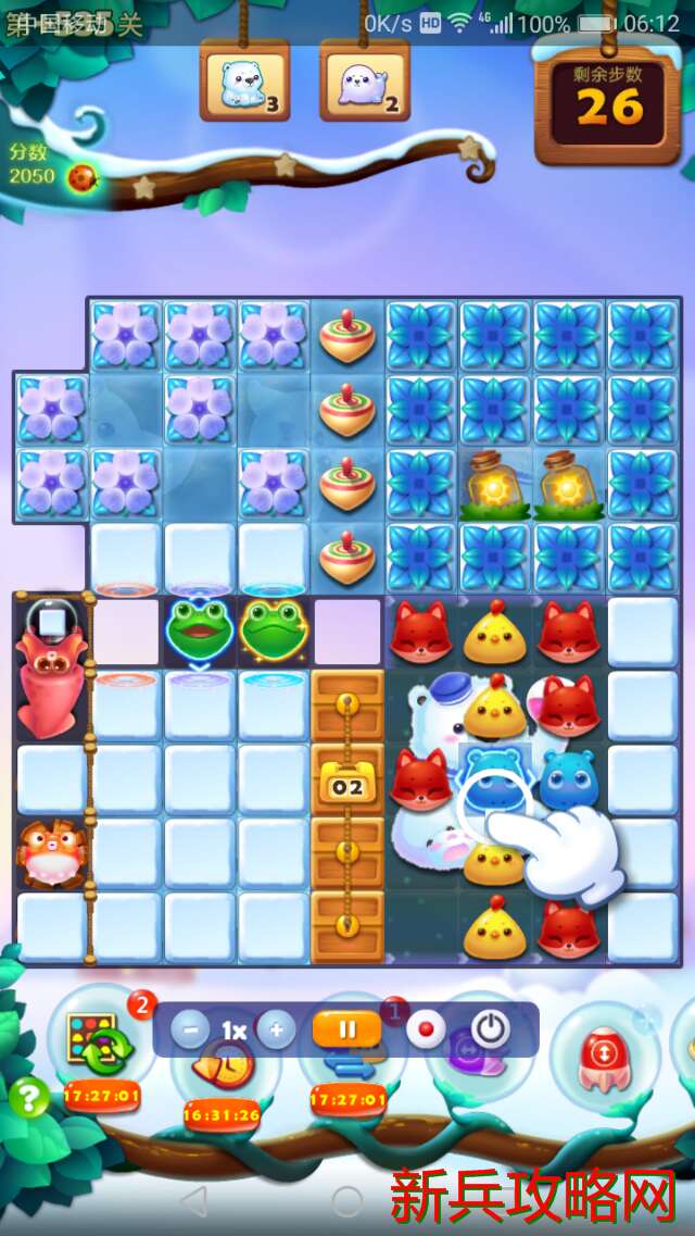 收钥匙打开宝箱,然后组特效消除雪块解救海洋生物。