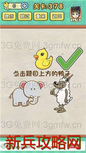 脑力达人全民烧脑游戏第378关【点击题目上方的鸭子】怎么过攻略答案