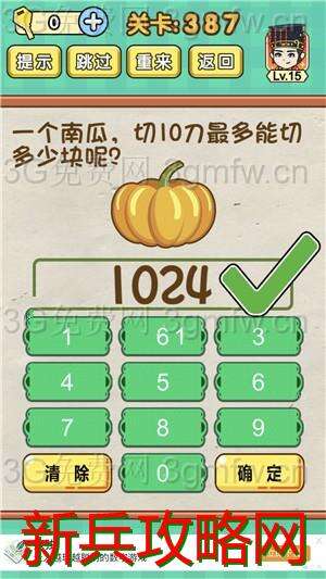 一个南瓜切10刀最多能切多少块呢是《脑力达人全民烧脑游戏》第387关的问题,很多网友不知道答案是什么,下面小编给大家带来脑力达人全民烧脑游戏第387关攻略。