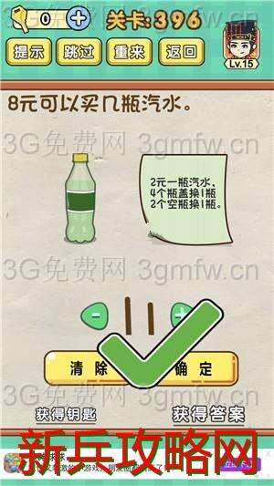 脑力达人全民烧脑游戏第396关【8元可以买几瓶汽水】怎么过攻略答案,第396关 8元可以买几瓶汽水 脑力达人全民烧脑游戏