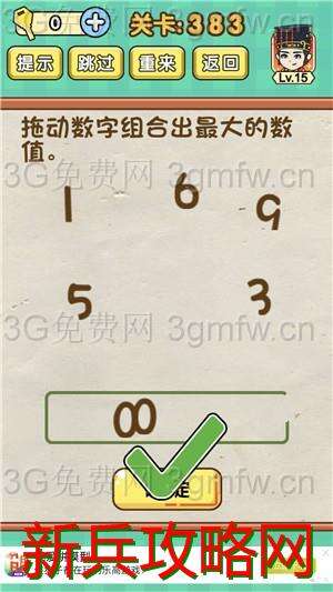 拖动数字组合出最大的数值是《脑力达人全民烧脑游戏》第383关的问题,很多网友不知道答案是什么,下面小编给大家带来脑力达人全民烧脑游戏第383关攻略。