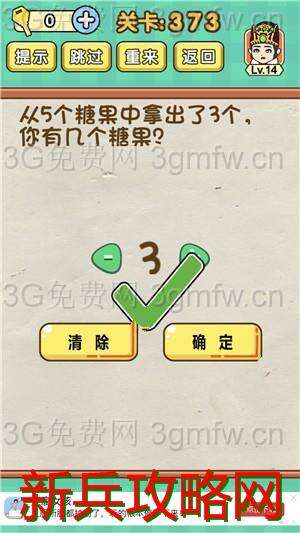 脑力达人全民烧脑游戏第373关【从5个糖果中拿出了3个你有几个糖果】怎么过攻略答案