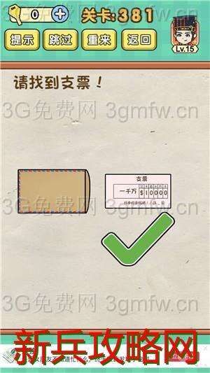 脑力达人全民烧脑游戏第381关【请找到支票】怎么过攻略答案,第381关 请找到支票 脑力达人全民烧脑游戏