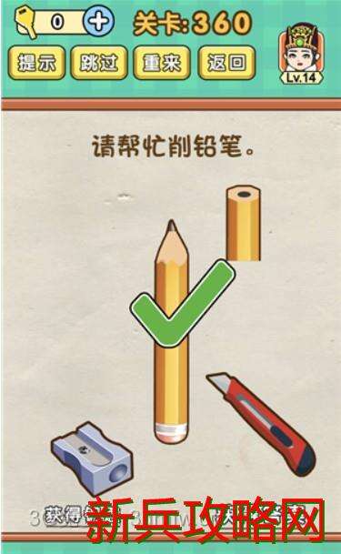 脑力达人全民烧脑游戏第360关【怎么削铅笔】怎么过攻略答案,第360关 脑力达人全民烧脑游戏 怎么削铅笔