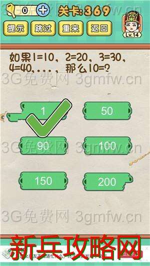 时间:2020-02-04 15:51:00 来源:新兵攻略网 阅读:脑力达人全民烧脑游戏第369关【如果1=10,2=20,3=30......那么10=?】怎么过攻略答案,第369关 脑力达人全民烧脑游戏