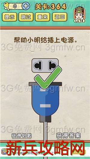 脑力达人全民烧脑游戏第364关【帮助小明给插上电源】怎么过攻略答案,第364关 脑力达人全民烧脑游戏 帮助小明给插上电源