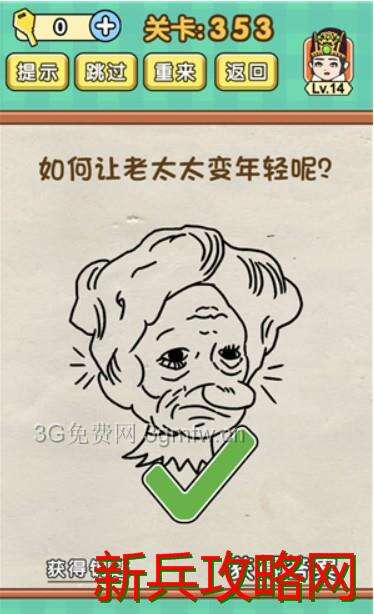 脑力达人全民烧脑游戏第353关【如何让老太太变年轻呢】怎么过攻略答案,第353关 如何让老太太变年轻呢 脑力达人全民烧脑游戏