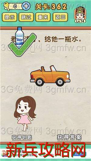 脑力达人全民烧脑游戏第362关【老王渴了给他一瓶水】怎么过攻略答案,第362关 脑力达人全民烧脑游戏 老王渴了给他一瓶水