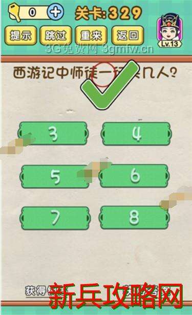 脑力达人全民烧脑游戏第329关【西游记中师徒一行有几人】怎么过攻略答案,第329关 脑力达人全民烧脑游戏 西游记中师徒一行有几人