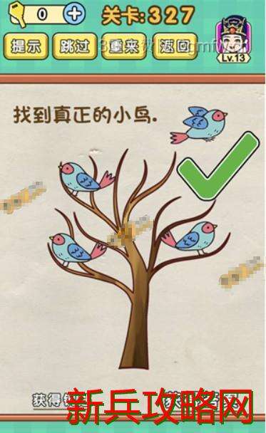 脑力达人全民烧脑游戏第327关【找到真正的小鸟】怎么过攻略答案,第327关 找到真正的小鸟 脑力达人全民烧脑游戏