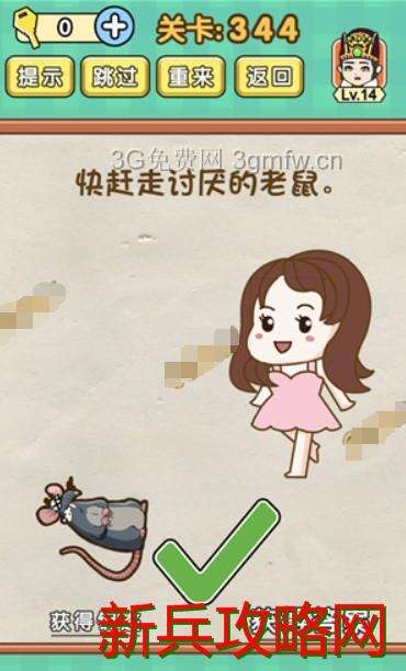 快赶走讨厌的老鼠是《脑力达人全民烧脑游戏》第344关的问题,很多网友不知道答案是什么,下面小编给大家带来脑力达人全民烧脑游戏第344关攻略。