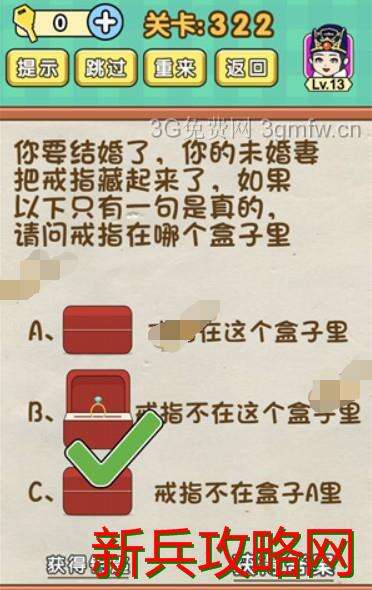 脑力达人全民烧脑游戏第322关【请问戒指在哪个盒子里】怎么过攻略答案