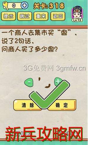 脑力达人全民烧脑游戏第318关【一个商人去集市买鼎说了2两句话商人买了多少鼎】怎么过攻略答案