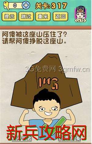 脑力达人全民烧脑游戏第317关【阿傻被这座山压住了请帮阿傻挣脱这座山】怎么过攻略答案