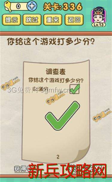 脑力达人全民烧脑游戏第336关【你给这个游戏打多少分】怎么过攻略答案,第336关 你给这个游戏打多少分 脑力达人全民烧脑游戏