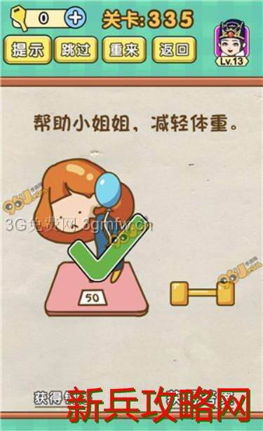 脑力达人全民烧脑游戏第335关【帮助小姐姐减轻体重】怎么过攻略答案,第335关 帮助小姐姐减轻体重 脑力达人全民烧脑游戏