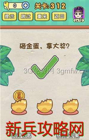脑力达人全民烧脑游戏第312关【敲金蛋拿大奖】怎么过攻略答案