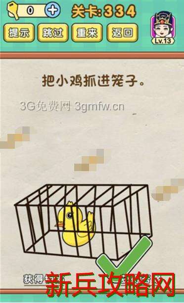 脑力达人全民烧脑游戏第334关【把小鸡抓进笼子】怎么过攻略答案,第334关 脑力达人全民烧脑游戏 把小鸡抓进笼子