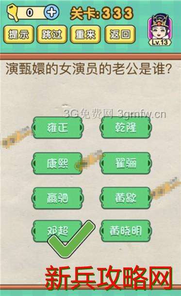 脑力达人全民烧脑游戏第333关【演甄嬛的女演员的老公是谁】怎么过攻略答案,第333关 演甄嬛的女演员的老公是谁 脑力达人全民烧脑游戏