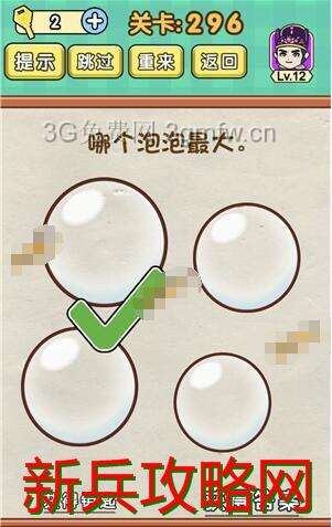 脑力达人全民烧脑游戏第296关【哪个泡泡最大】怎么过攻略答案,哪个泡泡最大 第296关 脑力达人全民烧脑游戏