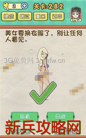 脑力达人全民烧脑游戏第282关【美女要换衣服了别让任何人看见】怎么过攻略答案