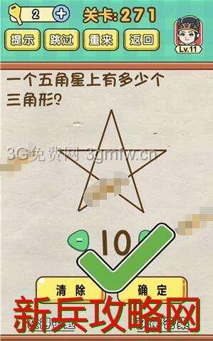 脑力达人全民烧脑游戏第271关【一个五角星上有多少个三角形】怎么过攻略答案