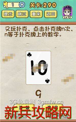 脑力达人全民烧脑游戏第290关【又玩扑克点击扑克牌n次n等于扑克牌上的数字】怎么过攻略答案
