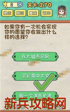 脑力达人全民烧脑游戏第270关【如果你有一次机会实现你的愿望你会做出什么样的选择】怎么过攻略答案