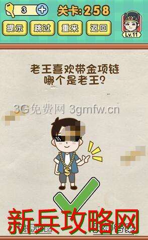 脑力达人全民烧脑游戏第258关【老王喜欢带金项链哪个是老王】怎么过攻略答案