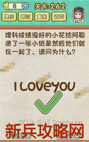 脑力达人全民烧脑游戏第262关【理科成绩很好的小花给阿聪递了一张纸条他们就在一起了请问为什么】怎么过攻略答案
