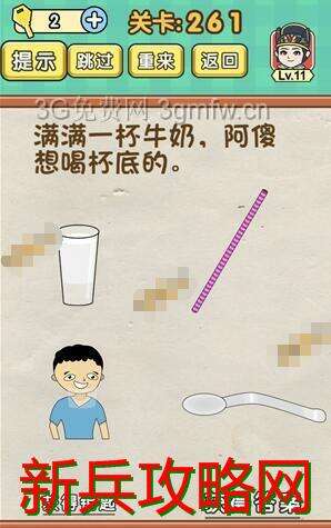 脑力达人全民烧脑游戏第261关【满满一杯牛奶阿傻想喝杯底的】怎么过攻略答案