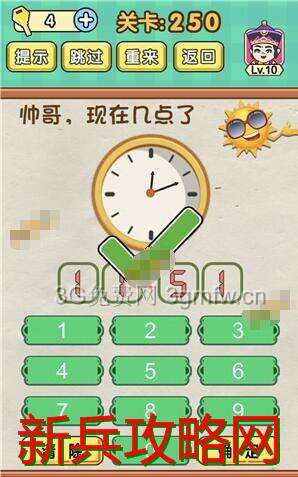 脑力达人全民烧脑游戏第250关【帅哥现在几点了】怎么过攻略答案,帅哥现在几点了 第250关 脑力达人全民烧脑游戏