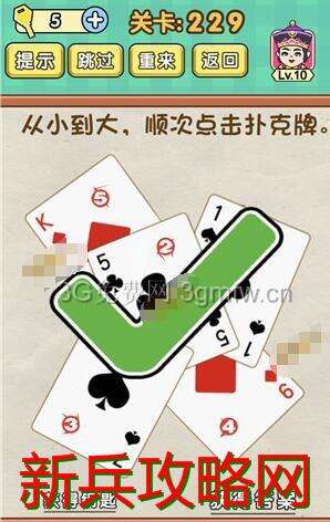 脑力达人全民烧脑游戏第229关【从小到大顺序点击扑克牌】怎么过攻略答案,第229关 脑力达人全民烧脑游戏 从小到大顺序点击扑克牌