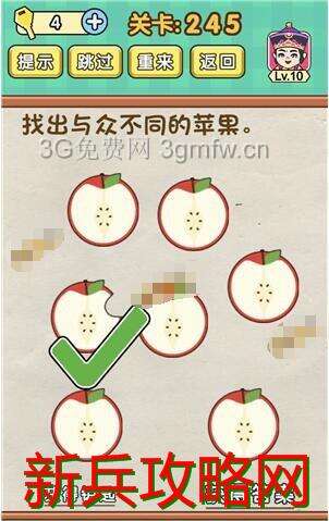 脑力达人全民烧脑游戏第245关【找出与众不同的苹果】怎么过攻略答案,找出与众不同的苹果 第245关 脑力达人全民烧脑游戏